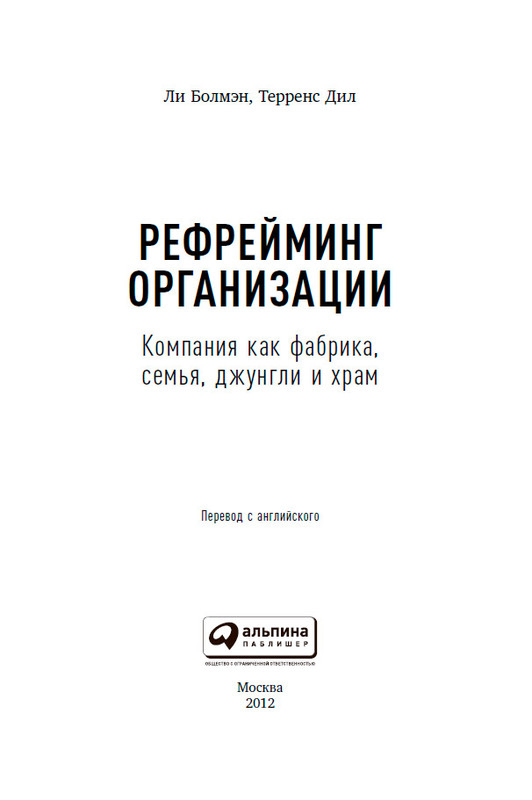 Рефрейминг организации: Компания как фабрика, семья, джунгли и храм / Ли Болмэн, Терренс Дил; Пер. с англ. — М.: Альпина Паблишер, 2012.