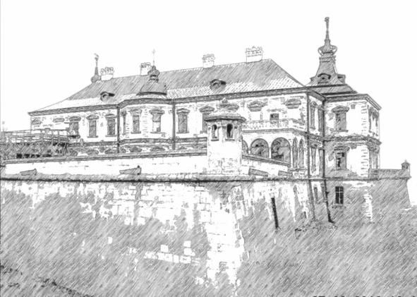 Люди почти никогда не забредали в эту местность ещё и потому, что сам замок производил жуткое впечатление. Он был двухэтажным, но очень высоким. Стены, выложенные из чёрного камня, перетекали в остроугольную крышу. Для защиты от посягательств Леонард приказал окружить здание широким рвом. Фасад был развёрнут в сторону города, и лишь с этой стороны рва не было.