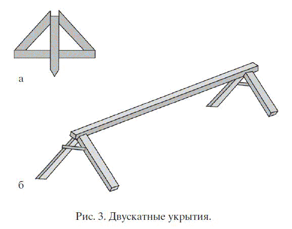 Для изготовления двускатных укрытий используют рейки сечением 40 Х 40 или 40 Х 50 см, из которых изготовляют каркасы двух видов.