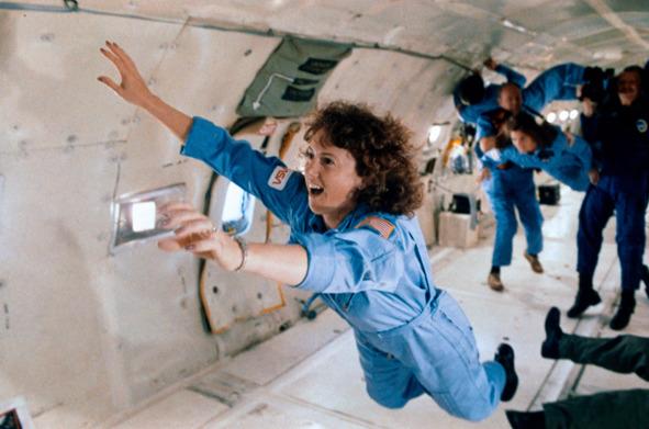 Криста Маколифф во время тренировки в условиях невесомости