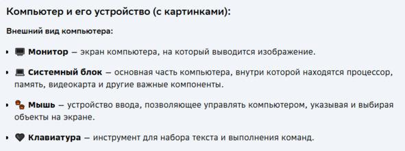 Для учеников начальной школы, включая первый, второй и третий классы, информатика преподносится в игровой и доступной форме, ориентированной на формирование базовых представлений о компьютере, информационных технологиях и алгоритмах. Основные темы курса информатики для начальной школы включают следующие направления: