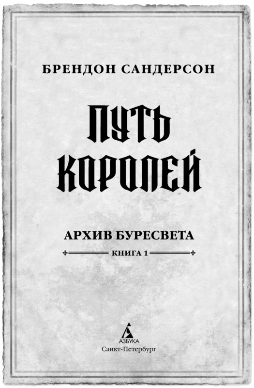 Архив Буресвета. Книга 1 : Путь королей : роман / Брендон Сандерсон ; пер. с англ. Н. Осояну. — СПб. : Азбука, Азбука-Аттикус, 2016. (Звезды новой фэнтези).