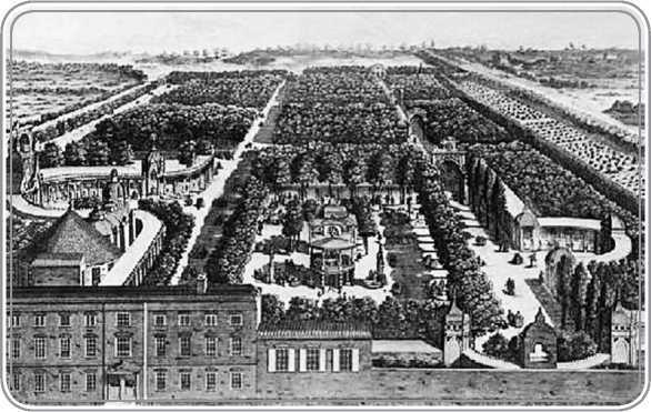 Парк Vauxhall Gardens в Лондоне (с карт. 1751 г.)