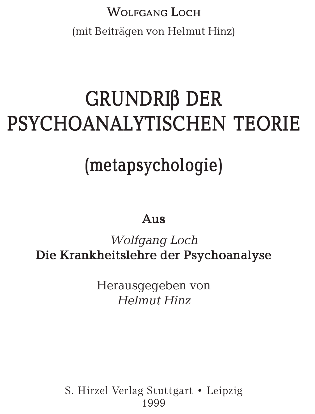 В 1993 г. Вольфганг Лох обратился ко мне с предложением переработать главу «Основы психоаналитической теории (метапсихология)» учебника «Психоаналитическое учение о болезнях. Общая и специальная теория неврозов, психозов и психосоматических заболеваний у взрослых, детей и подростков». Мы вместе обсудили все возможные изменения и дополнения, и нам удалось интегрировать их в прежде существовавший текст. Результат проделанной нами работы и предоставляется вашему вниманию. А в июне 1994 г., незадолго до смерти Волфганга Лоха (07.02.1995), была начата работа над шестым, полностью переработанным и дополненным изданием учебника, где изменения и корректуры планировалось внести уже во все главы.