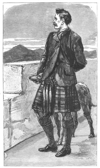 As I speak I look around me. The evening sunshine is streaming into my room, which occupies the whole of one story of the tower. Glance where I please, nothing is here that fails to delight the eye. The carpet beneath my feet is soft as moss, the tall mullioned windows are bedraped with the richest curtains. Pictures and mirrors hang here and there, and seem part and parcel of the place. So does that dark lofty oak bookcase, the great harp in the west corner, the violin that leans against it, the jardinière, the works of art, the arms from every land—the shields, the claymores, the spears and helmets, everything is in keeping. This is my garret. If I want to meditate, I have but to draw aside a curtain in yonder nook, and lo! a little baize-covered door slides aside and admits me to one of the tower-turrets, a tiny room in which fairies might live, with a window on each side giving glimpses of landscape—and landscape unsurpassed for beauty in all broad Scotland.