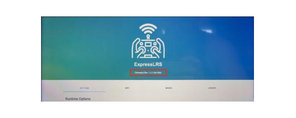 Как узнать версию прошивки приёмника? Подключиться с компьютера или телефона по Wi-Fi к сети ExpressLRS RX с паролем по умолчанию expresslrs и перейти в браузере на адрес 10.0.0.1. Прошивка приёмника указана на открывшейся странице.