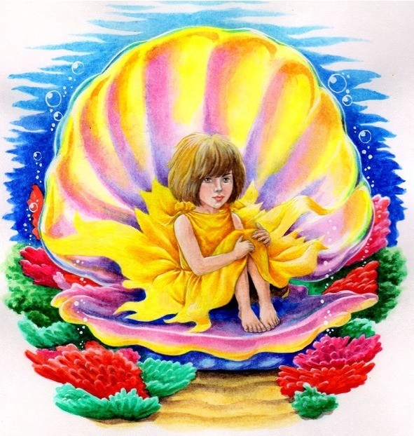 Но вернёмся к песчинке. Когда она попала в раковину, и стала расти, то превращалась не в жемчужинку, как это бывает у раковин, а в девочку с ручками, ножками и прелестным личиком. На личике Марты сияли карие глаза, ярко-красный губки, небольшой, но очень курносый нос и ямочки на розовых щёчках. Волосики у Марты были коротенькие, тёмно-русые, не в пример некоторым русалкам. Эти девицы – красавицы носились по морям и океанам со спутанными на голове куделями, а Марта считала это неаккуратным и негигиеничным. Девочка за своими волосиками ухаживала, вовремя их стригла, мыла душистым шампунем из морских водорослей. Ноги у Марты да, да, именно ноги, а не рыбьи хвосты были длинные и стройные на зависть сухопутным девчонкам. Вы спросите – почему ноги? Потому что Марта была не русалка, а просто морская девочка, самая обычная, какую можно встретить на каждом шагу на земле, то – есть на суше. Только в отличие от земных девочек у Марты на спинке, между лопатками, были маленькие, едва заметные жабры. Жабрами Марта дышала на морской глубине. А как же иначе? Иначе, она могла задохнуться и утонуть. Марта считала себя принцессой. А почему бы и нет? Подумаешь, нет у неё царства, ну и что? Главное, нужно вести себя как принцесса, а царство потом обязательно появится. Не может не появиться!