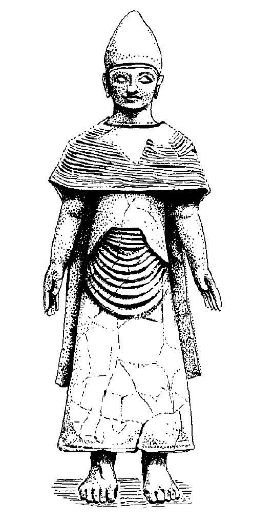 Терракотовая статуя, найденная на Кипре. Реконструкция из нескольких фрагментов, высота 1,2 м. Благодаря месторождениям меди остров Кипр играл важную роль в политических и экономических связях бронзового века.