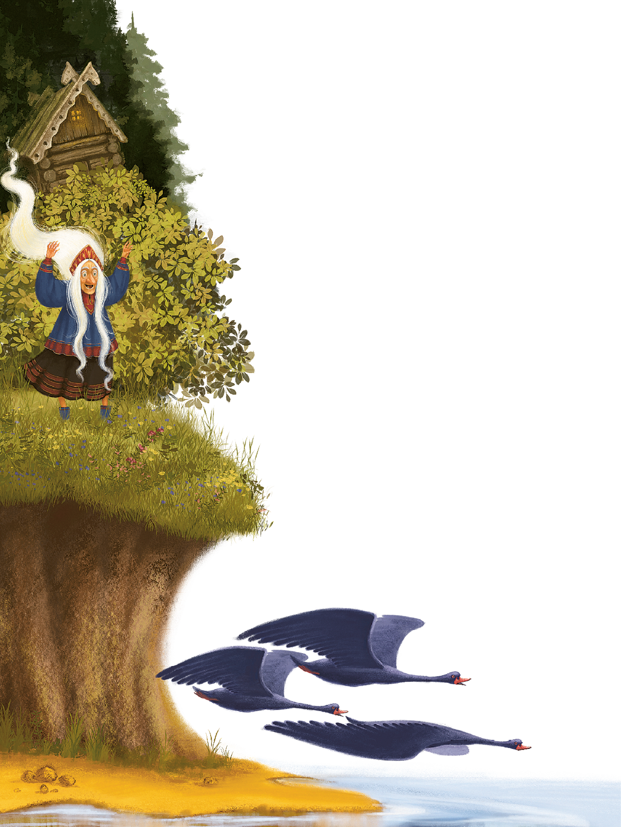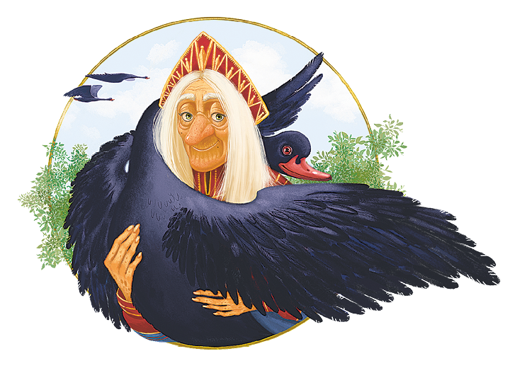 Гуси-лебеди давно себе дурную славу нажили: маленьких детей крали. Девочка угадала, что они унесли и её братца, бросилась их догонять. Бежала-бежала, видит — стоит печка.