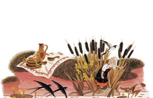 Выбежала она в чистое поле и только видела: метнулись вдалеке гуси-лебеди и пропали за тёмным лесом. Тут она догадалась, что они унесли её братца: про гусей-лебедей давно шла дурная слава – что они пошаливали, маленьких детей уносили.