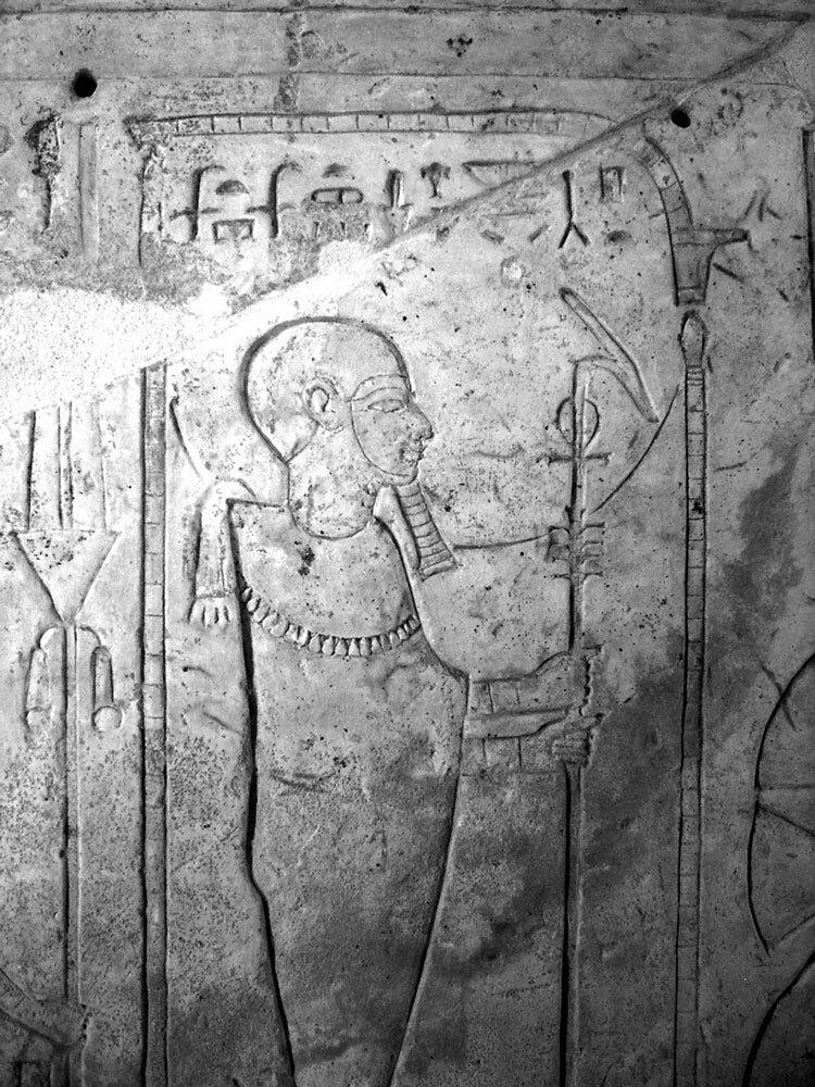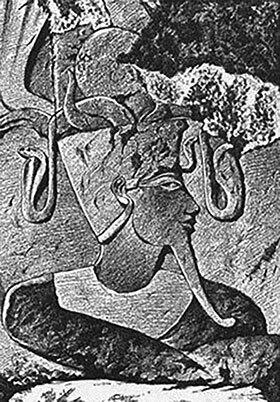 Рельеф, на котором изображен Атум-Ра. Храм Амона в Каве, Древняя Нубия (Судан)