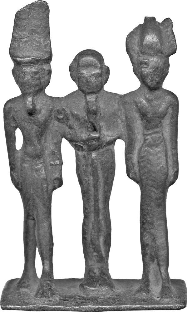 Амон, Птах и некая богиня, предположительно Хатхор, покровительница любви. Художественный музей Уолтерса, США