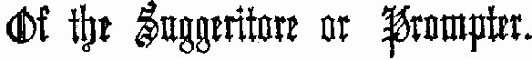 to allow the green fungus which excresces from the stage to cover him; and he must be the fortunate owner of a right arm as untiring as a locomotive crank or the sails of a windmill. It is a prevalent but mistaken idea, that the prompter is an impolite man; we happen to know that it is a matter of the deepest concern with him to be obliged to sit with his back to the audience. But he is like the angels and St. Cecilia, "Il n'avait pas de quoi" to do otherwise. Operas must be, Singers must have, a lead horse—(N. B. How can delicate females and tenors be expected to recollect "les paroles;")—and there he is, with a little hole in the back of his calash for the leader of the orchestra to stir him up when the excitement becomes very strong, and the time is irrecoverably lost. As to the social habits of the suggeritore, the naturalist is at a loss, for he immediately disappears after rehearsal, and remains in close retirement till the performance, after which he is again lost till the next day.