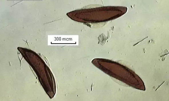 Во время проведения санитарно-эпидемиологического контроля территории детского спортивного лагеря прилегающая местность была исследована «методом флага». На ткани оказалисьчленистоногие каплевидной формы с терминально расположенным ротовым аппаратом. Отличительным признаком являются мелкие размеры (1 мм), 3 пары ходильных ног, щиток, покрывающий частично покрывающий спинную сторону.