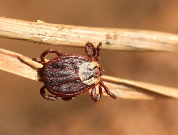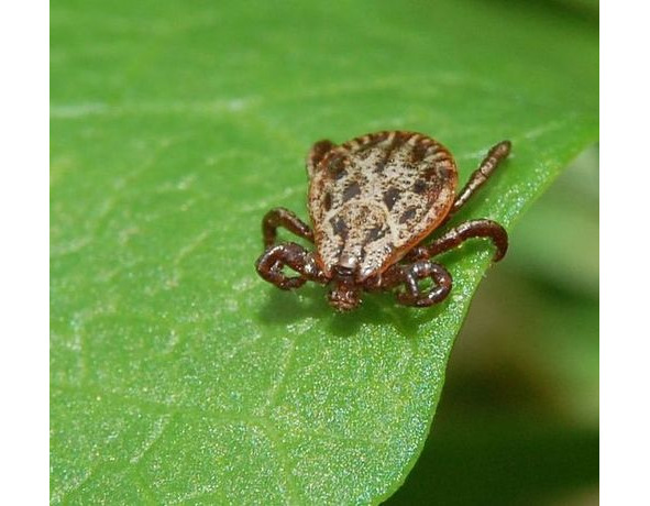 После прогулки с собакой в городском парке у домашнего питомца появились признаки пироплазмоза: (слабость, полный отказ от корма, сильнейшая жажда, апатия, тяжелое дыхание, примесь крови в моче). После заявления в Роспотребнадзор в парке был осуществлен сбор членистоногих «на флаг». Помощник энтомолога снял с флага клеща с заметным рисунком на щитке.
