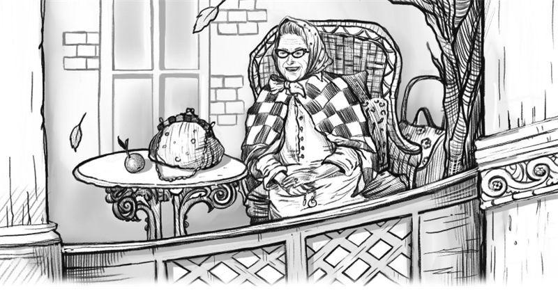 Сквозь просветы в балконной решётке Гришка разглядел узорчатый стол и соломенное креслице. В креслице жмурилась от солнышка нелепого вида старушка в синей гороховой косынке.