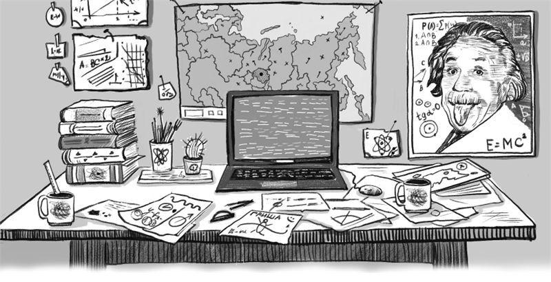 Через парадное крыльцо они вошли внутрь, поднялись на третий этаж и, петляя по длинным коридорам, добрались до двери с мудрёной надписью «Лаборатория математической физики». Андреич распахнул перед гостями дверь. Гришка, озираясь, вошёл.