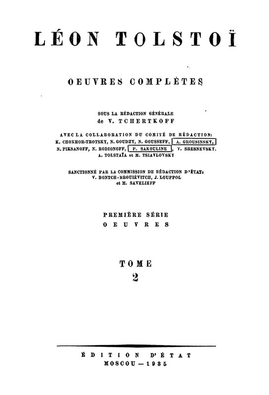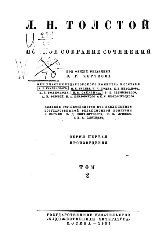 Снимок с титульного листа второго тома полного собрания сочинений Л. Н. Толстого