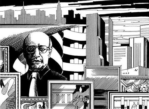 …Это была странная фигура, этот человек выглядел непривычно даже для видавшего виды портье одного из самых шикарных ресторанов Нью-Йорка «Четыре времени года». Но что делать, говорят, этот художник в длинном потрепанном черном пальто и шляпе с неровными, как бы объеденными мышами полями, — один из самых богатых и знаменитых людей Америки.