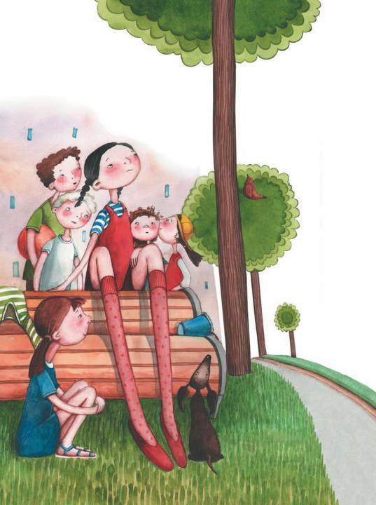 Все, кто был во дворе, собрались вокруг дерева. Они и чирикали, и подпрыгивали. Девочка с пружинными кудряшками даже протягивала свою недоеденную булку и кричала: «На-на-на!» Как будто звала собаку.