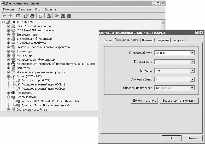 Остальные настройки последовательных портов обычно изменять не нужно. Вернуть все настройки порта к первоначальным значениям можно, нажав кнопку Восстановить умолчания.