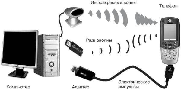 Связь телефона с компьютером можно установить тремя способами. Какими именно – зависит исключительно от модели вашего мобильника. К подавляющему большинству трубок можно подключить специальный кабель, по которому и происходит передача данных. Его называют data-кабелем (от англ. data – данные). Кроме разъема для подключения data-кабеля, во многих, хотя не во всех, телефонах предусмотрены устройства беспроводной связи с компьютером – инфракрасный порт или приемопередатчик Bluetooth. Некоторые, достаточно дорогие, телефоны поддерживают оба способа беспроводной связи.