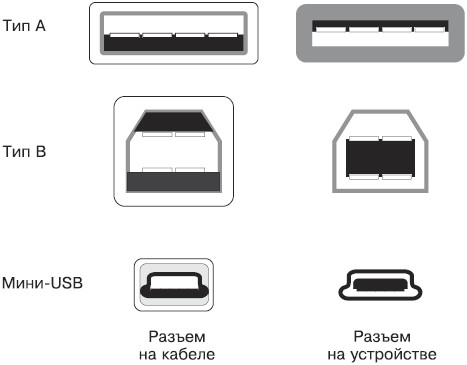 Существует три типа разъемов USB, различающиеся только формой и размером (рис. 1.5).