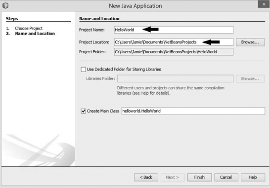 На следующем экране введите имя проекта HelloWorld; обратите внимание на то, в какой папке хранится проект. Наконец, щелкните на кнопке Finish, чтобы создать проект.