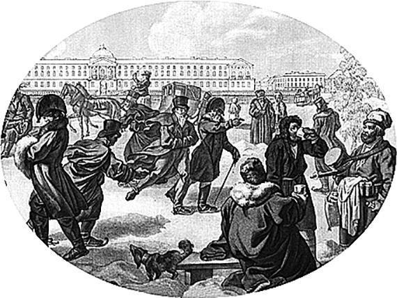 Правда, для них на некоторых улицах и площадях устраивались специальные очаги для обогрева, но, во-первых, это благодетельное нововведение началось лишь со времен Екатерины II, а во-вторых, такие очаги сооружались отнюдь не на каждом шагу, тогда как кабак всегда был под рукой: на углу Фонарного переулка и Офицерской – «Фонарный», у Поцелуева моста – «Поцелуй», у Кашина моста – «Кашин» и т. д. Кучерам и извозчикам важно было иметь ориентиры, чтобы ехать в нужном направлении: «Куда прикажете везти, барин?» – «В Никольскую улицу!» – «Это что у Харламова кабака, не доезжая Кашина? Пожалуйте двугривенный».