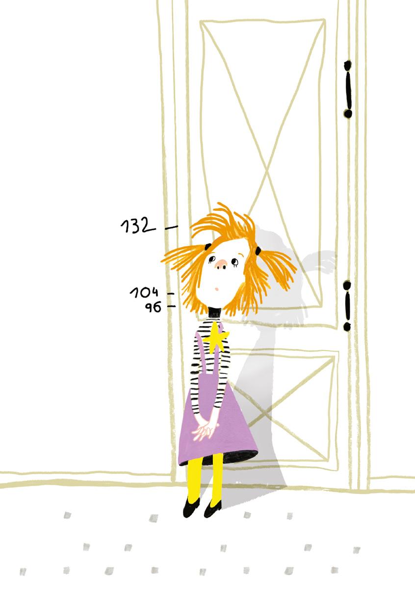 Маша с папой побежали к притолоке, побежали за карандашом, побежали за рулеткой. И выяснили, что… Машин рост — всего 132 см. Мало! Не хватает!