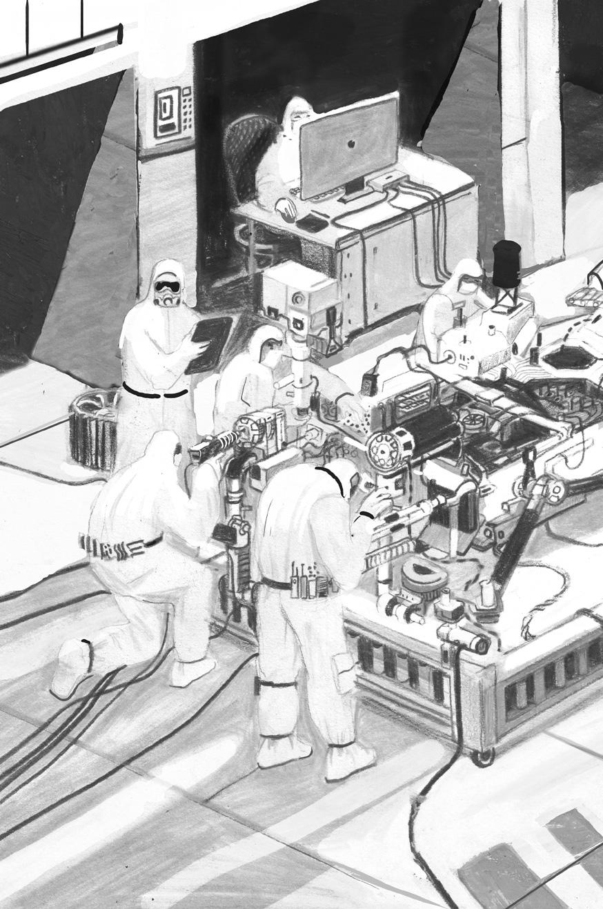 Меня называют роботом, а вокруг меня — люди. Люди, с которыми я взаимодействую, носят защитные костюмы, чтобы не занести ко мне бактерии и частицы пыли. Для успеха миссии мне очень важно оставаться в чистой, стерильной среде.