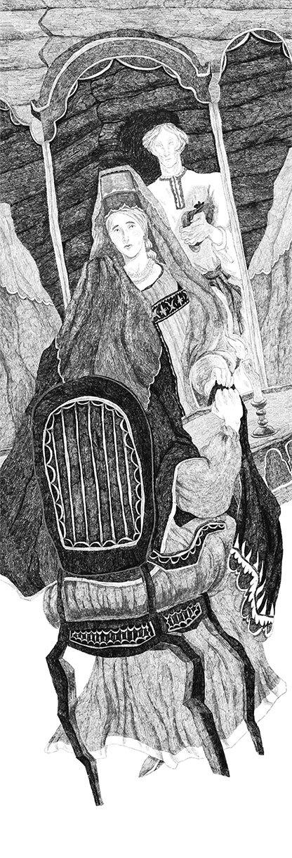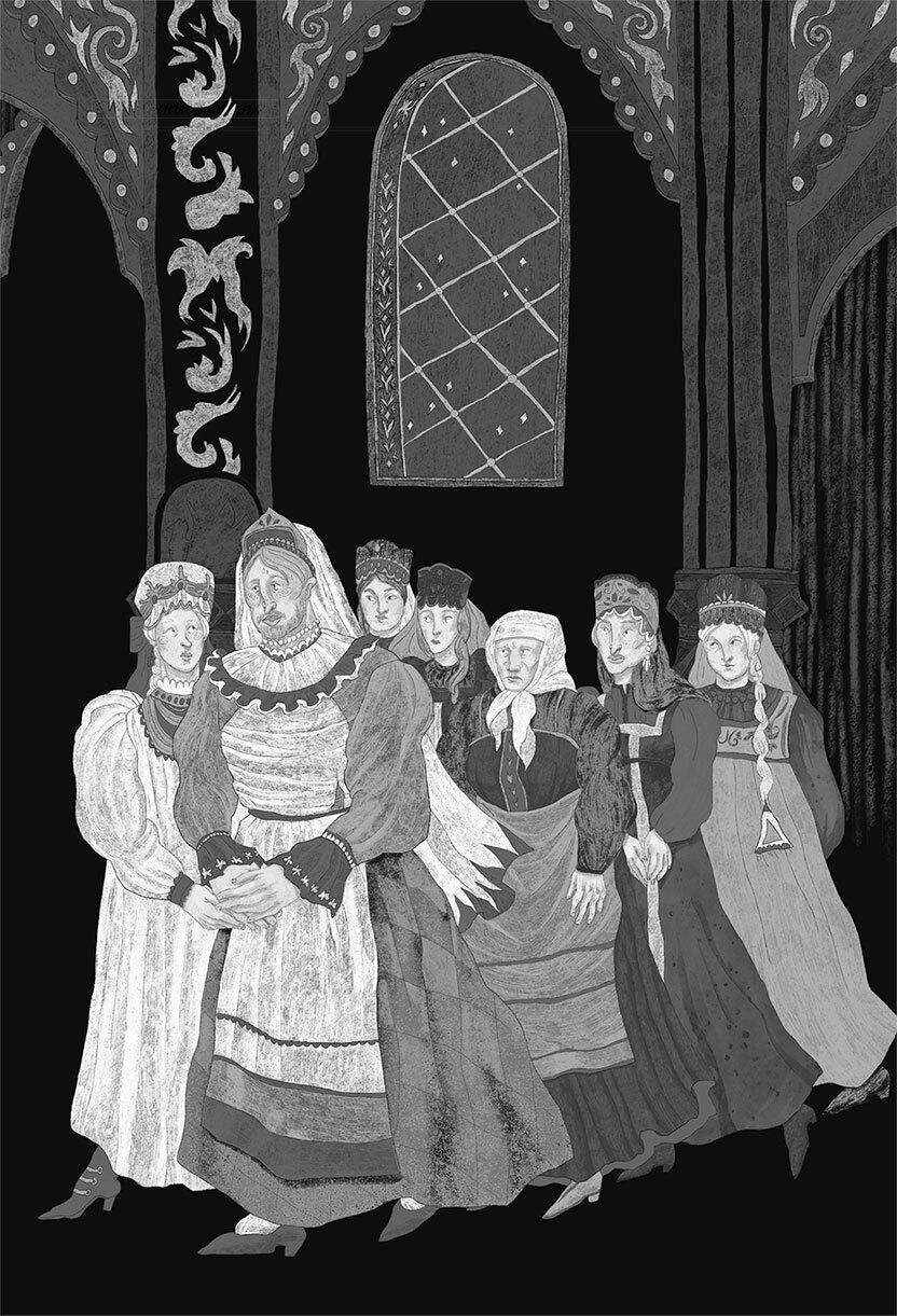 И стала та мамка говорить госпоже своей Аннушке: «Полноте, девицы, веселитца! Я вам объявлю игру, как бы прежде сего от децкой игры были». И та Аннушка не преслушала воли мамки своей и стала ей говорить: «Ну, мамушка, изволь, как твоя воля на все наши девичьи игры». И объявила им та мамка игру: «Изволь, госпожа Аннушка, быть ты невестою, – а на Фрола Скобеева показала, – сия девица будет женихом». И повели их в особливу светлицу для почиву, как водится в свадьбе, и все девицы пошли их провожать до тех покоев и обратно пришли в те покои, в которых прежде веселилис. И та мамка велела тем девицам петь грамограсныя песни, чтоб им крику от них не слыхать быти. А сестра Фрола Скобеева весма в печали великой пребывала, сожалея брата своего и надеется, что, конечно, будет притчина[4]. И Фрол Скобеев, лежа с Аннушкой, и объявил ей себя, что он Фрол Скобеев, а не девица. И Аннушка стала в великом страхе. И Фрол Скобеев, не взирая ни на какой себе страх, и ростлил ея девство. Потом просила та Аннушка того Фрола Скобеева, чтоб он не обнес[5] ея другим. Потом мамка и все девицы пришли в тот покой, где она лежала, и Аннушка быть в лице переменна. И девицы никто не могут признать Фрола Скобеева, для того что в девичьем уборе. И та Аннушка никому о том не объявила, только мамку взяла за руку и отвела от тех девиц и стала ей говорить искусно[6]: «Что ты надо мною зделала! Ето не девица со мною была; он мужественный человек, дворянин Фрол Скобеев!» И та мамка на то ей объявила: «Истинно, госпожа моя, что не могла признать ево, думала, что она такая же девица, как и все протчии, а когда он такую безделицу[7] учинил, ведаеш, что у нас людей доволно, можем ево скрыть в смертное место». И та Аннушка, сожалея того Фрола Скобеева, ответствовала: «Ну, мамушка, уже быть так, того мне не возвратить!» И пошли все девицы в пировой покой, Аннушка с ними же. И Фрол Скобеев в том девическом уборе, и веселились долгое время ночи. Потом все девицы стали иметь покой. Аннушка легла со Фролом Скобеевым. И наутри встали все девицы, стали разъезжаться по домам своим, тако ж и Фрол Скобеев и с сестрою своею. Аннушка отпустила всех девиц, а Фрола Скобеева и с сестрою оставила. И Фрол Скобеев был у Аннушки три дни в девичьем уборе, чтоб не признали ево служители дому того, и веселилис все со Аннушкою. И по прошествии трех дней Фрол Скобеев поехал в дом свой и с сестрою своею, и Аннушка подарила Фрола Скобеева денгами 300 рублев. И Фрол Скобеев приехал в дом свой весма рад, что желаемое исполнил, и делал Фрол банкеты и веселился с протчею своею братию дворянами.