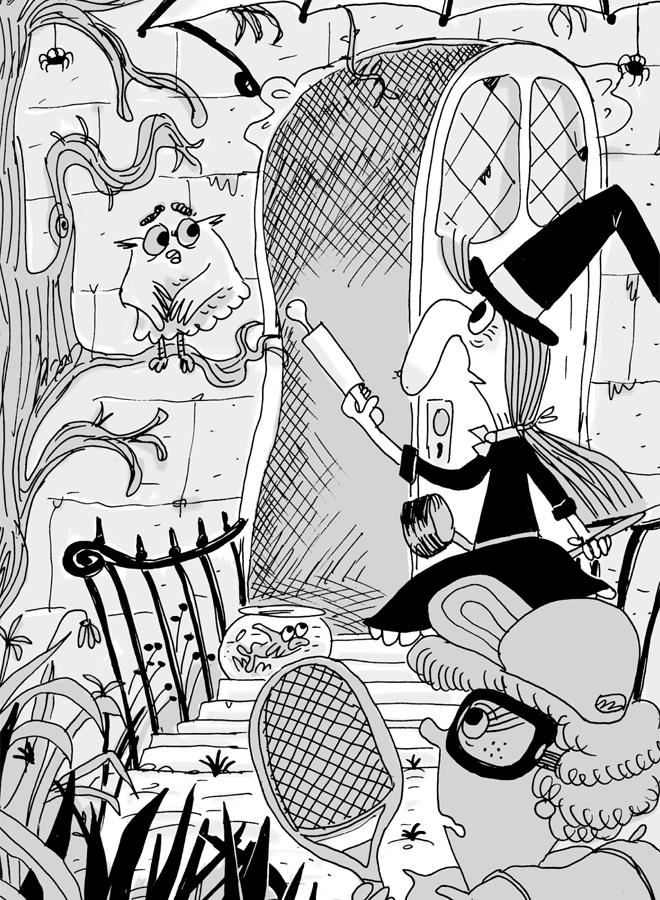 Но он не успел договорить, как стал расти, распрямляться, тянуться вверх. Это было похоже на то, как надувают спасательный жилет на пляже. Теперь перед Молли стоял высокий, очень высокий господин. На голове у него сидела крошечная шляпа, слишком маленькая, чтобы спрятать два огромных глаза.