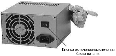 На рис. 1.2 изображен блок питания компьютера (обычно он вмонтирован в системный блок). Над разъемом питания (рис. 1.3) есть кнопка включения/выключения. Нужно отметить, что такая кнопка есть не у каждого блока питания.