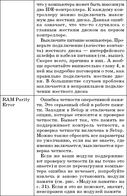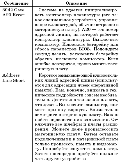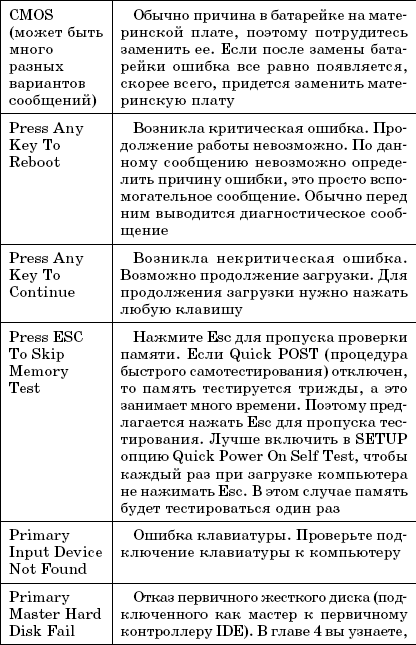 В первой главе мы поговорим о сообщениях, выводимых компьютером при загрузке. В большинстве случаев по этим сообщениям можно понять причину аппаратных неисправностей (это самые серьезные неисправности).