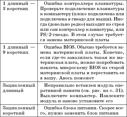 Таблица 2.2. Кодировка звуковых сигналов BIOS от Phoenix