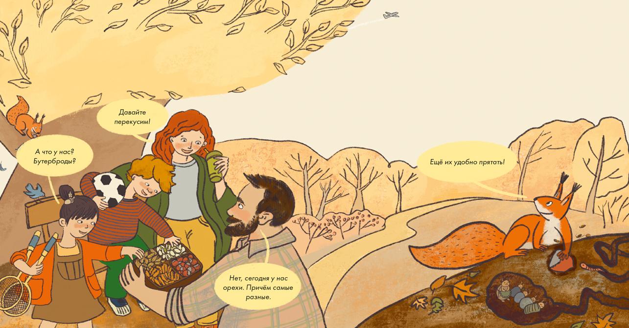 Таня и Савва вместе с родителями отправились на прогулку в парк. Они покатались на велосипедах, поиграли в бадминтон и собрали много красивых листьев для гербария. А теперь устроились на скамейке, чтобы немного отдохнуть.