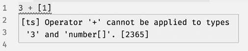 3 + [] // Ошибка TS2365: оператор '+' не может быть применен