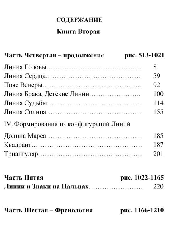 Во второй книге изложены оставшиеся разделы Хиромантии, а также предложены к ознакомлению Физиогномика и Кинесика.
