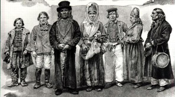 Теперь есть возможность аргументировано сказать, что северные ВИКИНГИ германцами являются всего на 26%, на 20% они славяне, а на 54% ОНИ ФИННСКОГО ПРОИСХОЖДЕНИЯ! То есть подавляющее большинство викингов — чухонцы! Таким образом даже эти грубые подсчёты показывают, что ирландцы всё-таки были правы, викинги-фингалы — зачастую белобрысые финны и как минимум они говорили на 3-х разных языках, не мудрено, что привыкшие к галлам-голландцам-датч-датчанам-дубгалам ирландцы не могли понять их. Как реально выглядели викинги? Ну наверное часть из них выглядела как-то так, причём вот так одевались ещё в 20-е годы ХХ века, хотя для тех кто вырос на сказках, будет весьма трудно переубедить что это не древний новгородец и что это фотография не какого нибудь двенадцатого века…