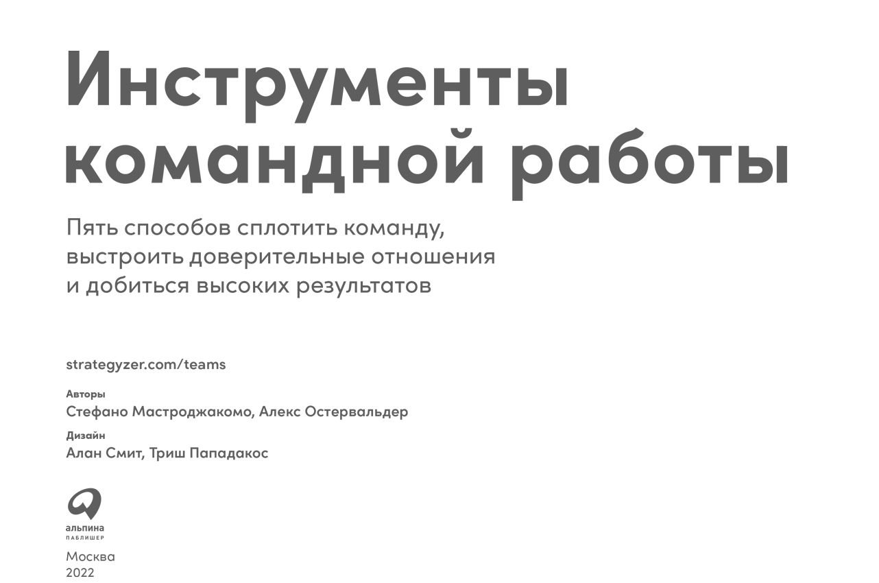 Стефано Мастроджакомо и Алекс Остервальдер показывают, как команды могут добиться успеха с помощью простых и действенных методов. Они предлагают стратегию, которой может воспользоваться любая команда, чтобы сразу же встать на путь полноценного участия, продуктивного конфликта и устойчивого прогресса. Эта книга с ее примерами, доступными инструментами и продуманными последовательностями действий, направленными на предотвращение (и восстановление после) всех видов предсказуемых командных проблем, является бесценным ресурсом. Я давно считаю, что простые инструменты способны порождать синергию, подталкивая команды в правильном направлении. И эта книга полна таких механизмов — действий и правил, идущих на пользу любой команде.