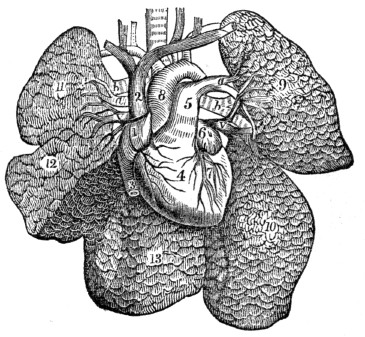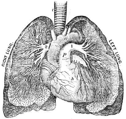 498. If one fourth part of the volume of air received by the lungs at one inspiration is decomposed at one “beat” of the heart, it might be supposed that if the expired air be again received into the lungs, one half of the oxygen would be consumed, and, in a similar ratio, if re-breathed four times, all the oxygen would be consumed. But it does not follow, if the air is thus re-breathed, that the same changes will be effected in the lungs. For air that has been inspired does not part with its remaining oxygen as freely as when it contains the proper amount of this life-giving element, and thus the changes in the impure blood are not so completely effected.