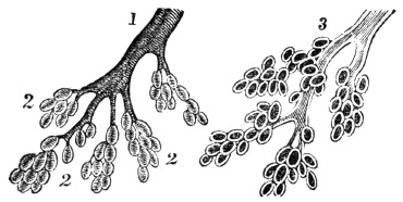 Fig. 98. 1, A bronchial tube divided into three branches. 2, 2, 2,