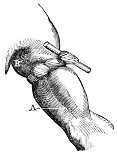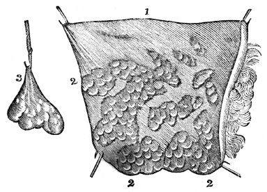 the membrane will have become of a bright red color. This is owing to the oxygen from the air passing through the bladder, and uniting with the blood, while the carbonic acid has escaped through the membrane.Fig. 99.