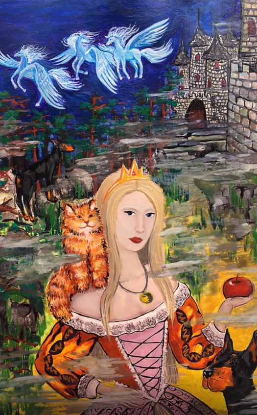 Тропинка петляла по лесу, впереди катилось яблоко, рядом бежали два ее любимых добермана, ну а кот путешествовал, лежа у нее на плече. Радостно и легко шагала королева. Солнышко мягко пробивалось сквозь листву, пели и щебетали птицы, бабочки и стрекозы перелетали с цветка на цветок… Задумчиво шагала королева по тропинке.