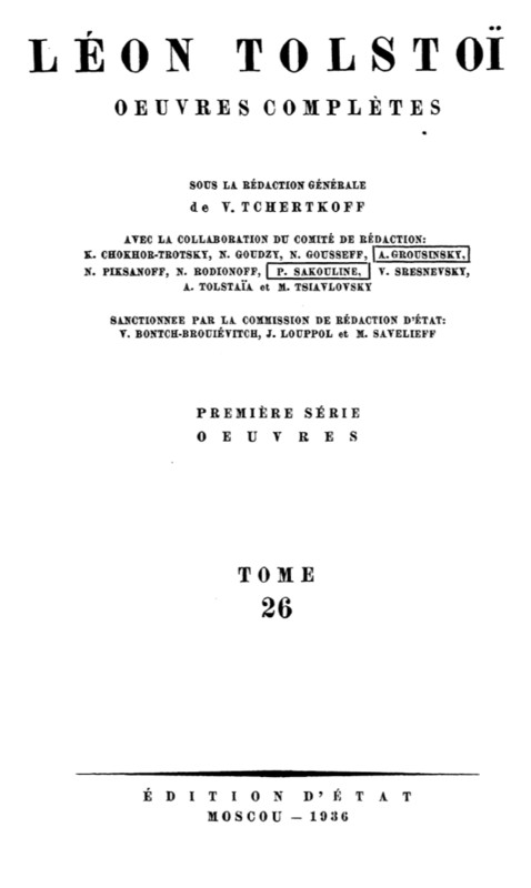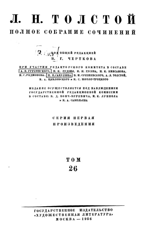 Полного собрания сочинений Л. Н. Толстого, предоставленной