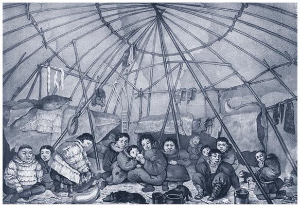 В чукотской яранге. Иллюстрация из кн.: Litke F. P. Voyage autour du monde.