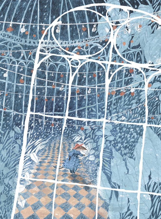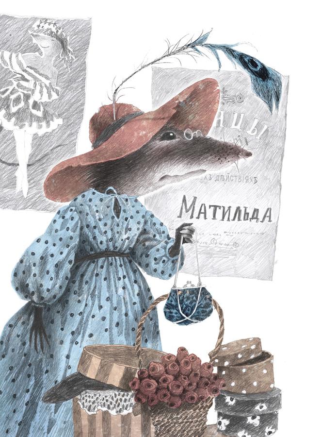 Вжих аккуратно приподнялся. У Матильды, как это было и в театре, всё в домике игрушечное. Да и сам домик тоже будто бы не настоящий. Фанерная, хоть и довольно просторная, пристройка к теплице — не сказать чтобы дом, а так, местечко для ночёвок. И всё же крыса даже из него слепила гнёздышко. Откуда только что взялось: старые кресла с потёртой обивкой, высокий облупившийся канделябр со свечными огарками, шляпная коробка, из которой топорщились шляпы с облезлыми перьями, и старинный круглый стол под кружевной скатертью. А на столе, на вязаной крючком салфетке, будто драгоценная реликвия — большой альбом, заботливо обклеенный бумажными цветами.