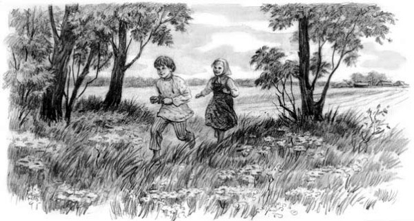 – Знаешь ли что? – сказал брат сестре. – В школу мы еще успеем. В школе теперь душно и скучно, а в роще должно быть очень весело. Послушай, как кричат там птички; а белок-то, белок сколько прыгает по веткам! Не пойти ли нам туда, сестра?