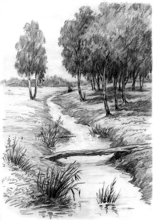 Детям стало скучно, что все заняты своим делом и никто не хочет играть с ними. Они подбежали к ручью. Журча по камням, пробегал ручей через рощу.